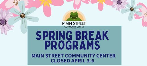 The Main Street Community Center will be closed Friday, April 3rd through Monday, April 6th.